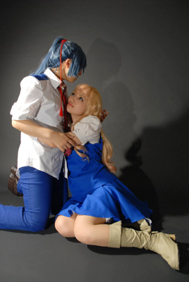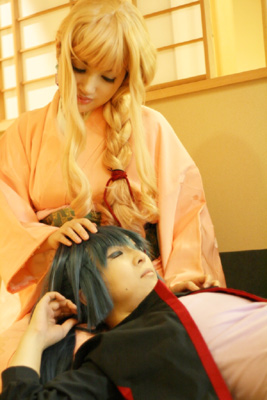 まずは高坂さんと二人で会場へ行きました。珍しくメイクもしていったし、着替えもすぐに終わるので、前半は割りとダラダラして休憩とかしていました。お嬢様は中々厳しかった…かぐや姫ヘアーきつー。悪者二人組みだよね、て言われました。全くそのとうりでございますよ…。しかしこの二人、服はお揃いだけど接点があまりない…。ツーショはどうやって撮れば…。