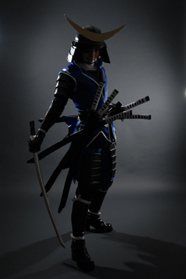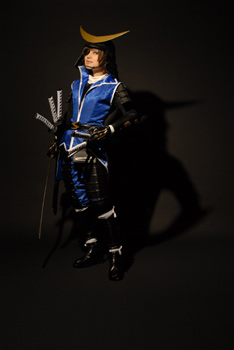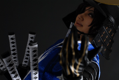 黒背景で暗めで渋く格好いい感じで。私がヘタレなんで構えとか微妙なんですがその辺はカメラでカバー(笑)。いつもの事ですが、模造刀を構えてたら腕がだるくて筋肉痛ですよ…。