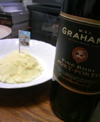 マキさんに持ってきてもらったグラハムワインはめっちゃ甘かった…デザート的な感じで味わうといいのか?マッシュポテトは砂山のように見えるな(笑)。