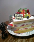 ケーキは悩んだけど普通のデコレーションの四角いやつにした。名前もちゃんと書いてもらったよ!(メモを渡した)ろうそくの本数は悩んで28歳にしてみた。まだ二期始まってないからね。