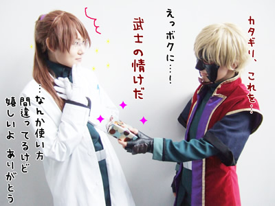 私、ブシは割りと回数こなしているので、仮面ももう普通になっているんですが、やっぱり周りから見ると面白いみたいで、一般のお客さんにジロジロ見られたり若いカップルに「ブシドーだよ」て指差さされたり(貴殿さてはガンオタだな)レイヤーさんにも「ちょ、ブシドーwww」と色々でした。