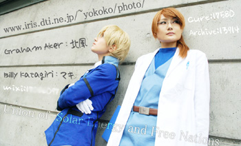 高坂さんが女装アーデさんを作ってきた!なんともセクシー。そして、ライルじゃなくてニールが居ました。どっちも一緒じゃ…いえ、スミマセン。KAGURAくんは加地くん。初めて見たよ、イケメンだー!
